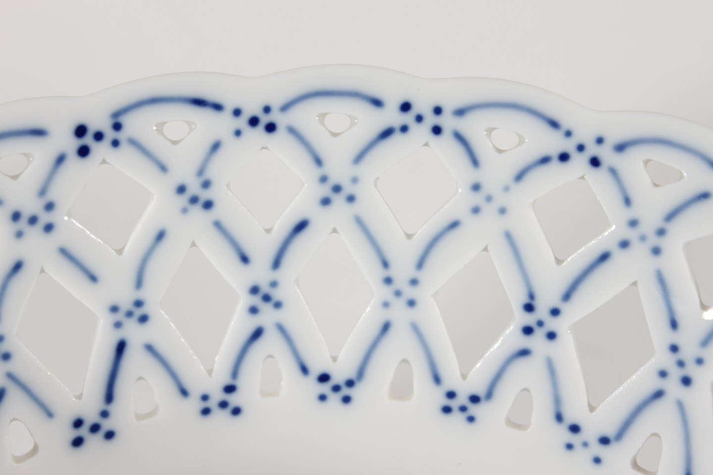 Royal Copenhagen Musselmalet Helblonde Frugtskål med blondekant model nr. 1/1054 med stempel fra perioden 1969-74 Diameter 19 cm Højde 6 cm Fin fejlfri 1. sortering