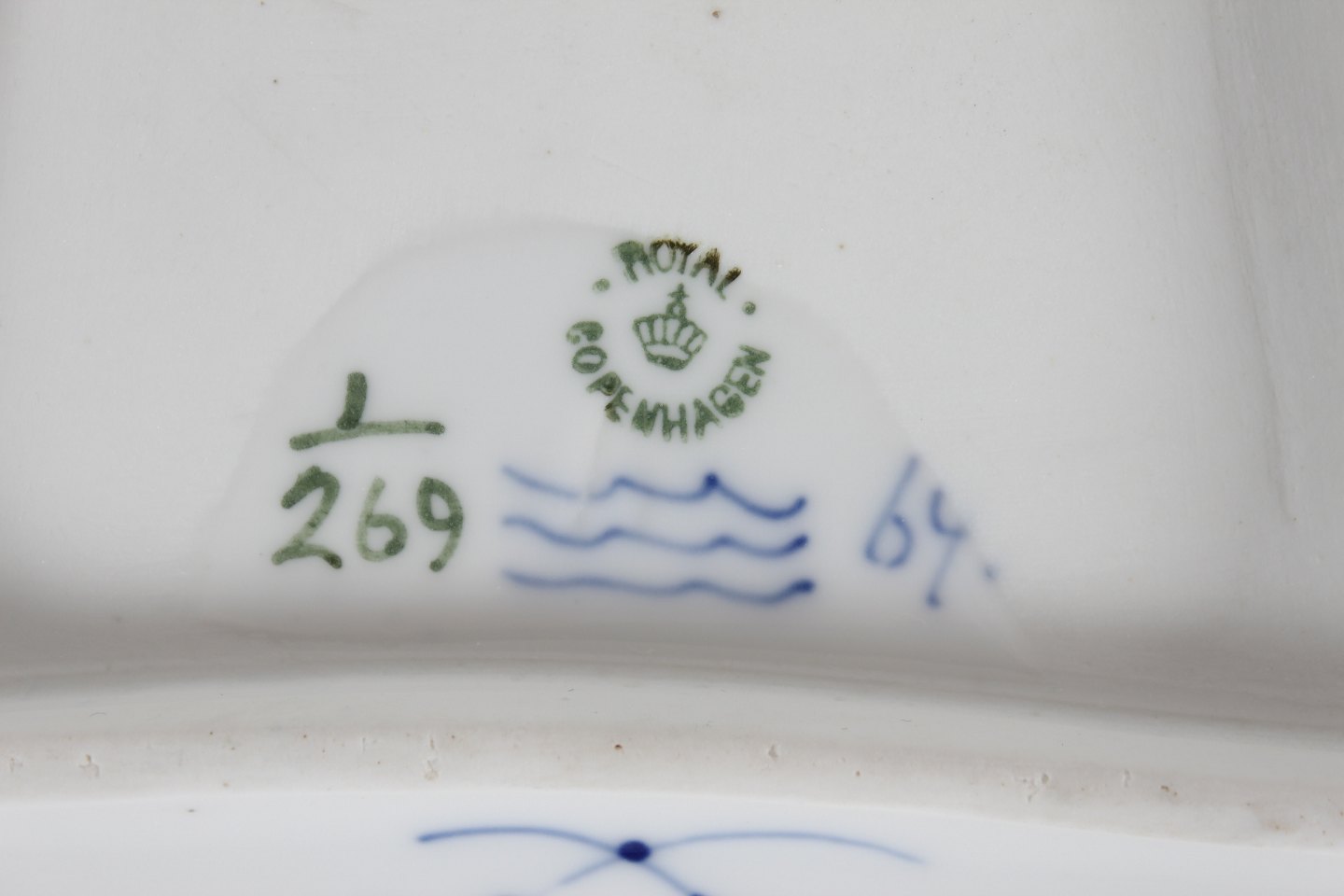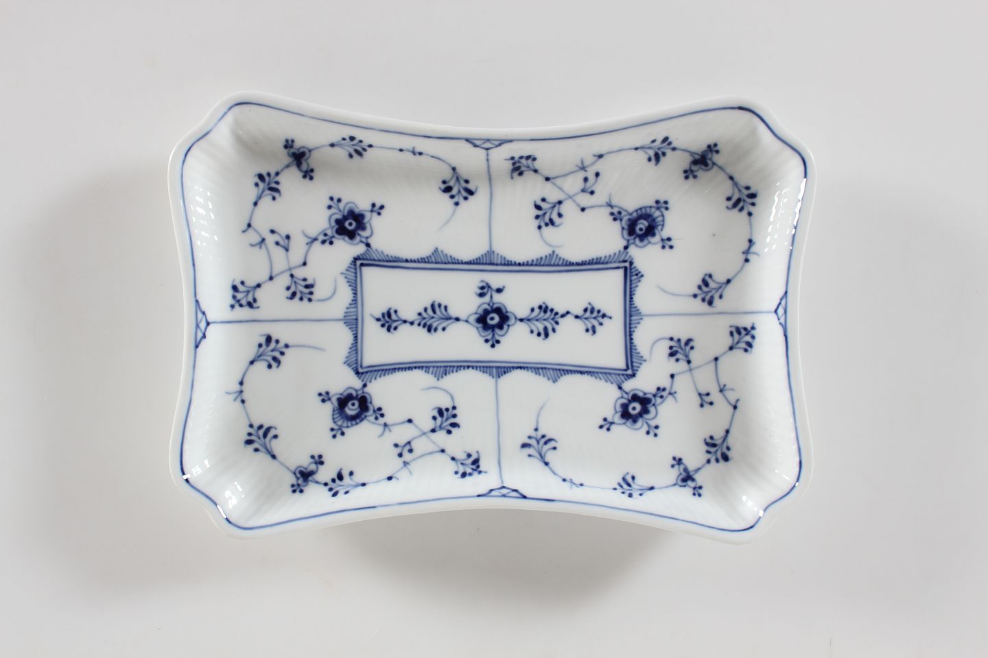 Royal Copenhagen - Musselmalet Riflet Antik sukker/fløde fad og sushi tallerken nr. 1/269 med stempel fra perioden 1894-1922 og vellykket dekoration - fint eksemplar Længde 23 cm Bredde 17 cm Fin fejlfri 1 sortering