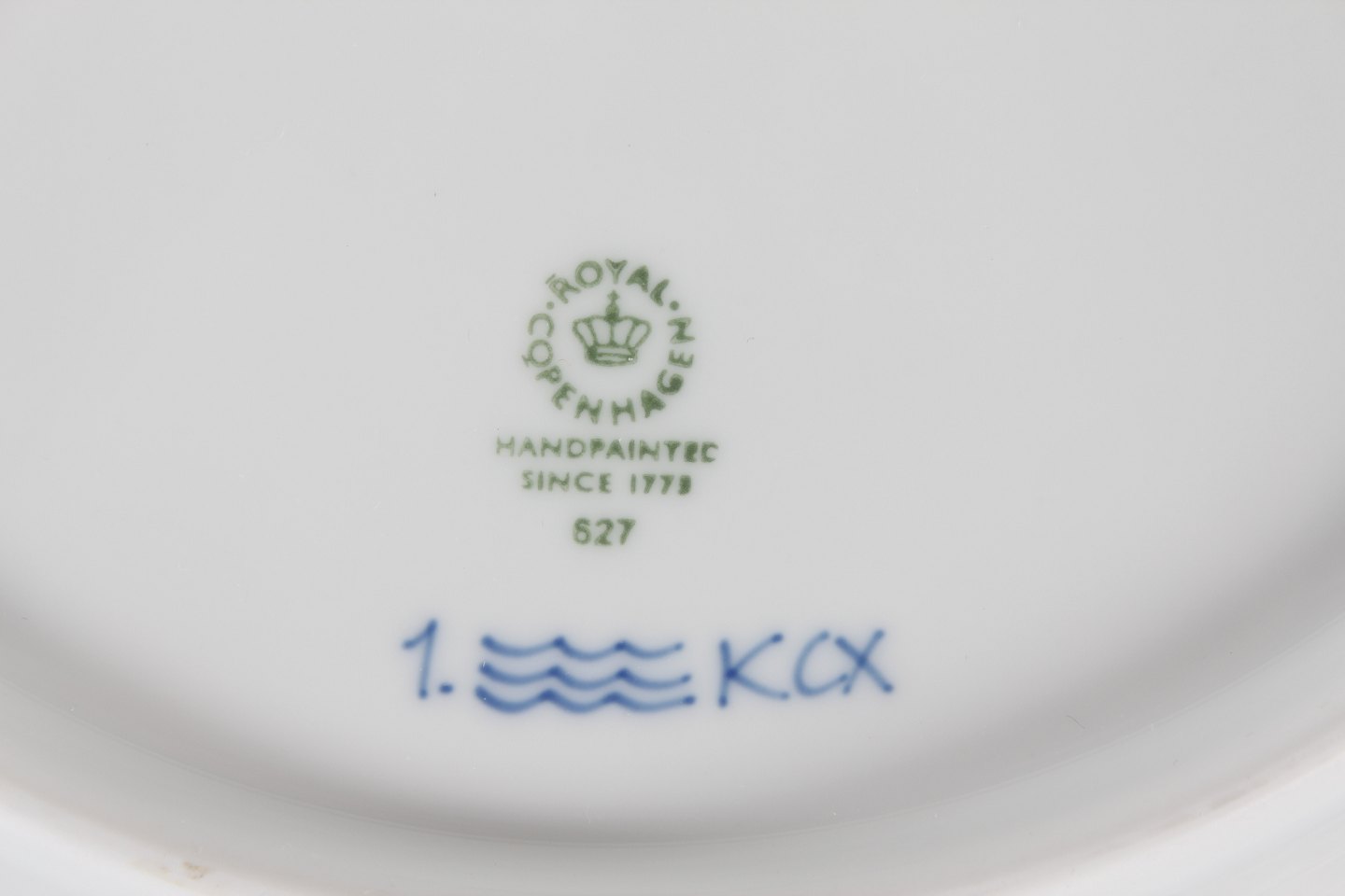 Antik Royal Copenhagen Musselmalet Riflet Stor middagstallerken nr. 627 med stempel fra perioden 2016-2019 Diameter 27 cm 1. sortering