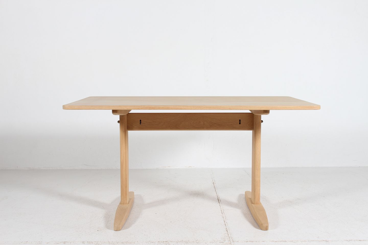 Børge Mogensen (1914-1972) Lille Shakerbord fremstillet af massiv sæbebehandlet egetræ Producent: C. M. Madsens Fabrik Længde 140 cm Bredde 89 cm Højde 71 cm Fin stand - klar til brug Bordet kan beses efter aftale