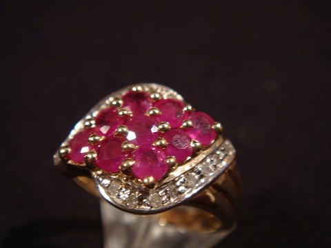 Ruby and diamond ring. Rubin Made in 10 kt gold and adorned with nine rubies totaling 1.90 ct. All 16 diamonds in total. 0.16 ct. Ringstr 55 = approx. Ø 17.25