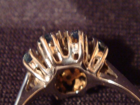 Brilliant: 8 x 0.02 ct = 0.16 ct. Sapphire 8 x .02 ct = .16 ct. sapphire in the middle = 0.15 ct