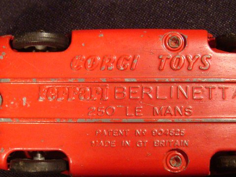 GORGI TOYS FERRARI BERLINETTA 250 LE MANS. PATENT NO 904525 MADE IN GT. BRITAIN