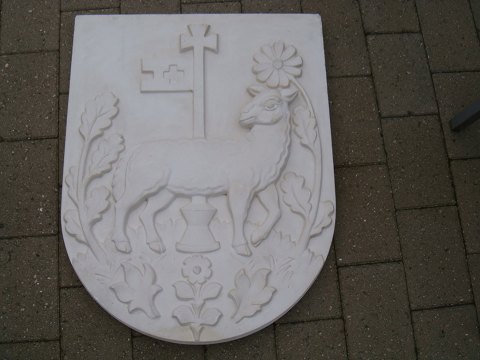 Assens byvåben skal også være våben for Ny-Assens! Det har 700 års tradition med det kristne symbol af Guds Lammet og vort herlige Dannebrog. Højde 70 cm bredde: 55 cm.