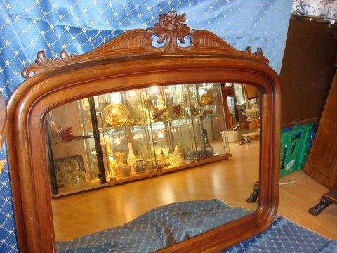 Stort flot Spejl i Mahogny ca år 1890. Højde: 81 cm. Bredde: 97 cm