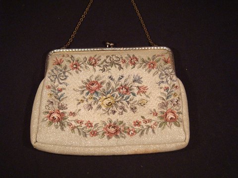 Gammel Selskabs taske bredde: 20 cm højde:16 cm Håndsyet med roser