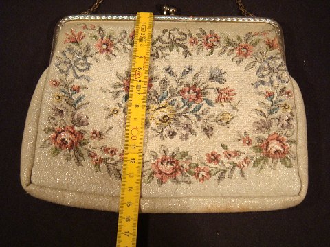 Gammel Selskabs taske bredde: 20 cm højde:16 cm Håndsyet med roser