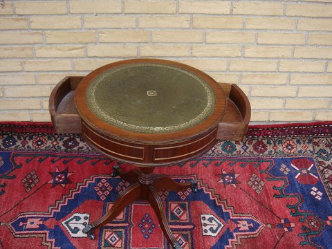 English Mahogany Lamp Table with 2 skuffer.Ben mounted BLøvesko with hjul.Diameter 50 cm. Height: 59.5 cm