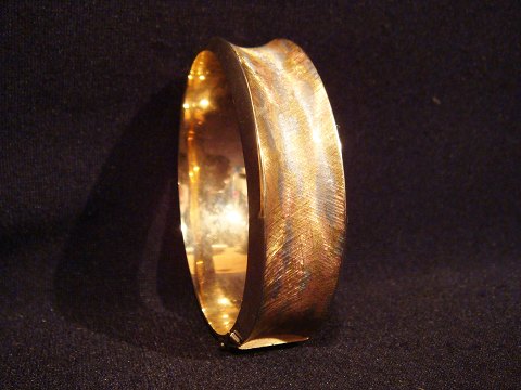 Bracelet 14k Gold 585, weight: 27.4 gram.Stemplet JA (Jens Asby Design Copenhagen / Frederiksberg). Bangle has an inner diameter: 5.4 x 6.0 mm.udvendig diameter: 6.1 x 6.7 mm. Thickness: 4 mm. Width: 2.0 cm. Bracelet is polished up. so it's like new