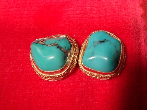 Ørestik med Grønd Tyrkis. Guld 14k 585. Diameter: 1,5 cm Nypoleret og fremstår som nye