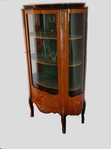 Glasvitrine med buget låge i rosentræ med intarsia, og Bronce monteringer.