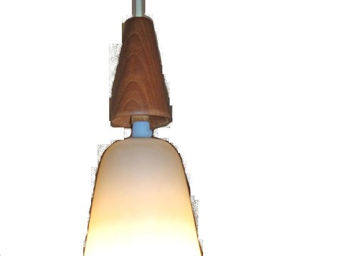 Ceiling Lamp. in råvid glass and teak top. Holmegaard. Around the year 1960