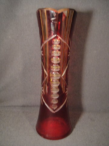Høj Rubinrød vase, "Bøhmisk" glasvase med overfangs glas og slibninger