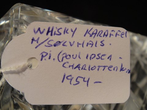 Whiskey decanter with silver neck.