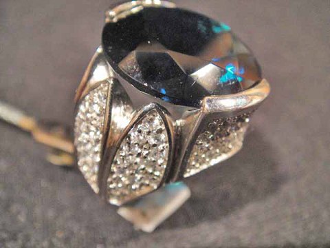 Ring med stor blå krystal.