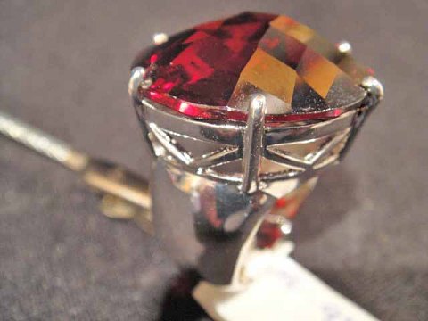 Ring. med rød krystal Sølv sterling 925s. Ring størelse: 56 solgt