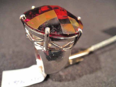Ring. med rød krystal Sølv sterling 925s. Ring størelse: 56 solgt