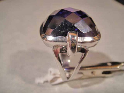 Ring. med Stor Lilla krystal. Sølv sterling 925s. Ring størelse: 57 Solgt