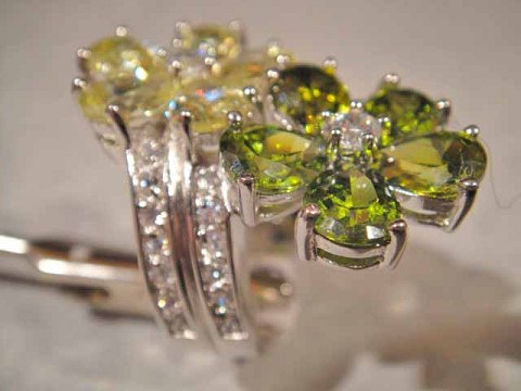 Ring. med krystaler i for som to blomster.. Sølv sterling 925s. Ring størrelse: 57