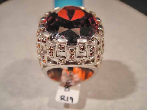 Ring.Sølv adorned with large red crystal, the sides with Red Brilliant cut crystals.