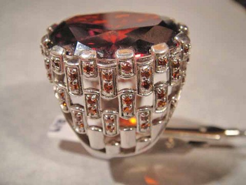 Sølv prydet med stor Rød krystal, siderne med Røde Brilliant slebet krystaller.