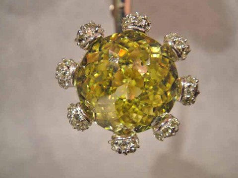 Ring. with Large Yellow crystal, the sides lined with numerous cut crystals.