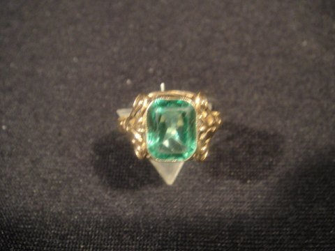 Gold ring with green staircase cut peridot.