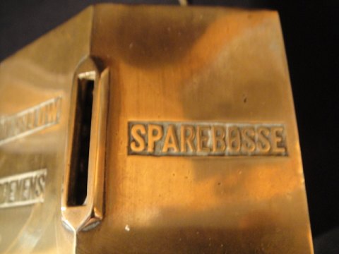 Odd Fellow-order piggy bank. in brass. The Danish Farmers' Bank. neat and well kept. key included to save gun.
