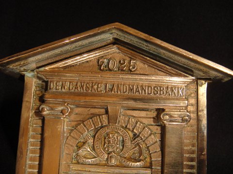 Odd Fellow-order piggy bank. in brass. The Danish Farmers' Bank. neat and well kept. key included to save gun.