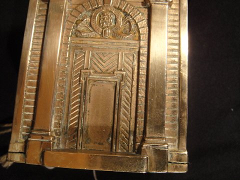 Odd Fellow-order piggy bank. in brass. The Danish Farmers' Bank. neat and well kept. key included to save gun.
