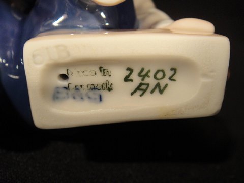 Figure Seated boy Stolpe, with brick in hand. B & G no 2402 Bing & Grondahl. 1 Sort