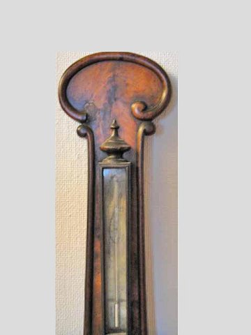 Engelsk kviksølvs banjo barometer fremstillet ca.år 1850. I maghogni kasse.