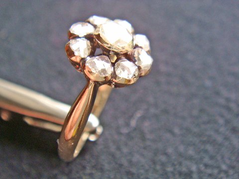 Rare antique Russian rosetring of 14k. gold with diamonds. Diamonds 9 pieces, total approx. 1.20 ct