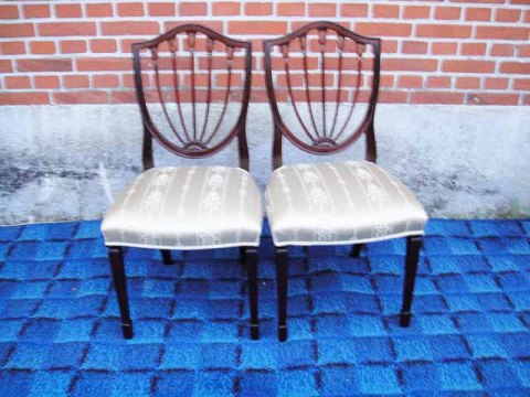 Hepplewhite Stühle 2 Stück Mahagoni, Schild-förmigen Rücken mit Schnitten am verjüngten vorderen Beine. von Strøjer Möbel.