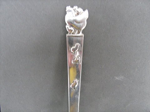Barnebestik / børne bestik Barneske med Høne og kyllinger. Tre Tårnet Sølv