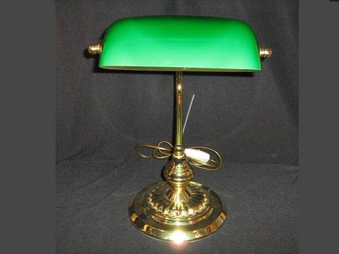 Skrivebordslampe med Grønt glas. på messingstel pris Solgt
