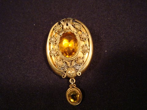 Antik Broche. med Citriner (kvarts)(Blandet slib).