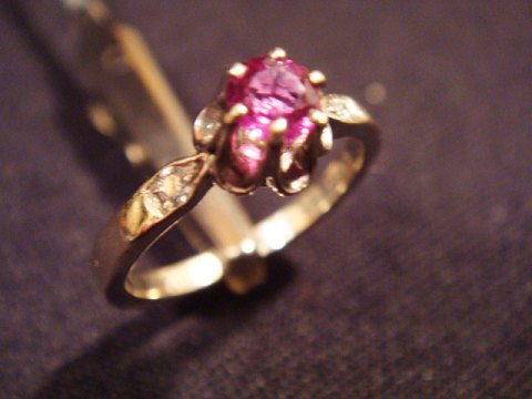Rubin 0,20 ct og to Brillanter wesselron vvs 2x0,02 ct i siden