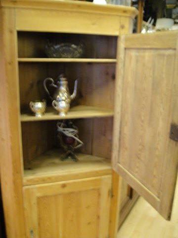 1800 century corner cupboard in pine deacidification with two doors.