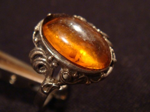 Sølv ring med rav. Sølv 925 sterling. Ring størrelse 57 Pris dkr. 175,-