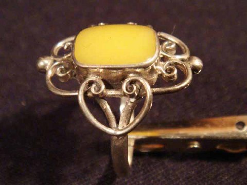 Silver Ring with amber. 925 Sterling Silver. Ring Size 60