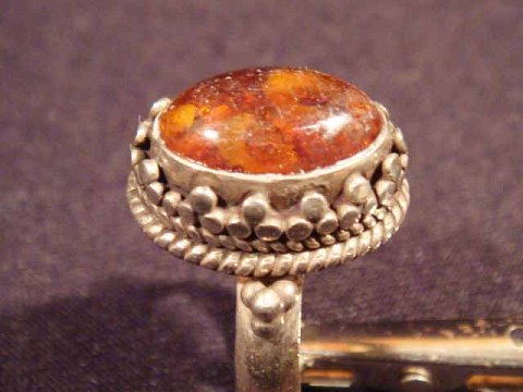 Silver Ring with amber. 925 Sterling Silver. Ring Size 55