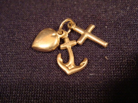 Tro håb og kærlighed. Anker-hjerte og kors. Guld 14k 585 pris kr. 495,-