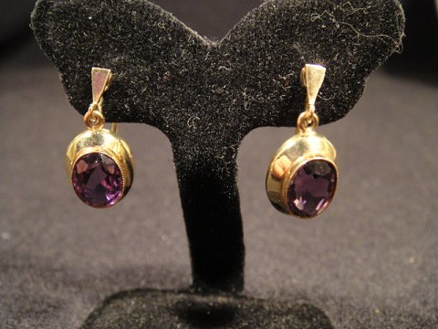 Amatyst øreringe med skrue. Guld 14k 585 HS Længde: 2 cm flotte og velholdte. pris solgt