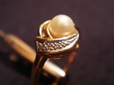 Ring med Perle og Brillanter. Guld 14k 585 Ringstørelse: 54 pris solgt