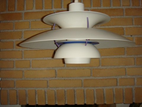 Poul Henningsen. / Louis Poulsen. Loftpendel. Model PH-5. Hvid. Flot stand.