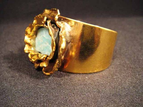 Armring med grøn Amazonsten. Stemplet Consantin Danmark. bredde: 4 cm