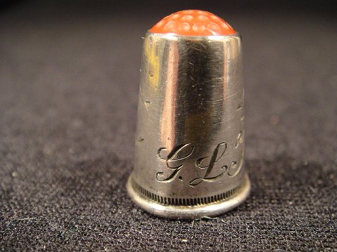 Sølvfingerbøl 830s. sølv med rød glasfluse og interialer. kontakt for pris