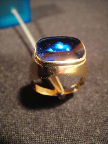 Herre guldring med blå turmalin. str.61 D. 20 mm. Guld 8k HSHS