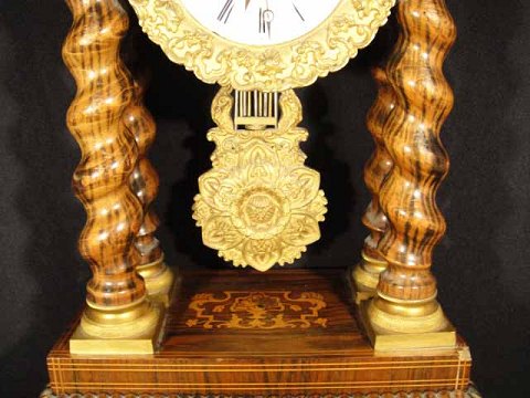 FRANSK Konsolur, palisander med intarsia af Citrontræ, urhus båret af drejede snoede søjler og Forgylde Bronzemontering.